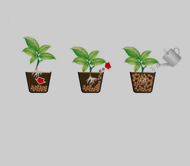 Do hodowli wybieramy sadzonki, które nie miały wcześniej kontaktu z ziemią lub bardzo młode rośliny, które dotąd rosły w ziemi. Przed zasadzeniem rośliny, która uprzednio była w ziemi - należy ją bardzo dokładnie usunąć z systemu korzeniowego, następnie umieścić w doniczce całkowicie wypełnionej CERTYD-em. Warto również w doniczce umieścić wskaźnik poziomu wody, by wiedzieć, kiedy podlewać roślinę.